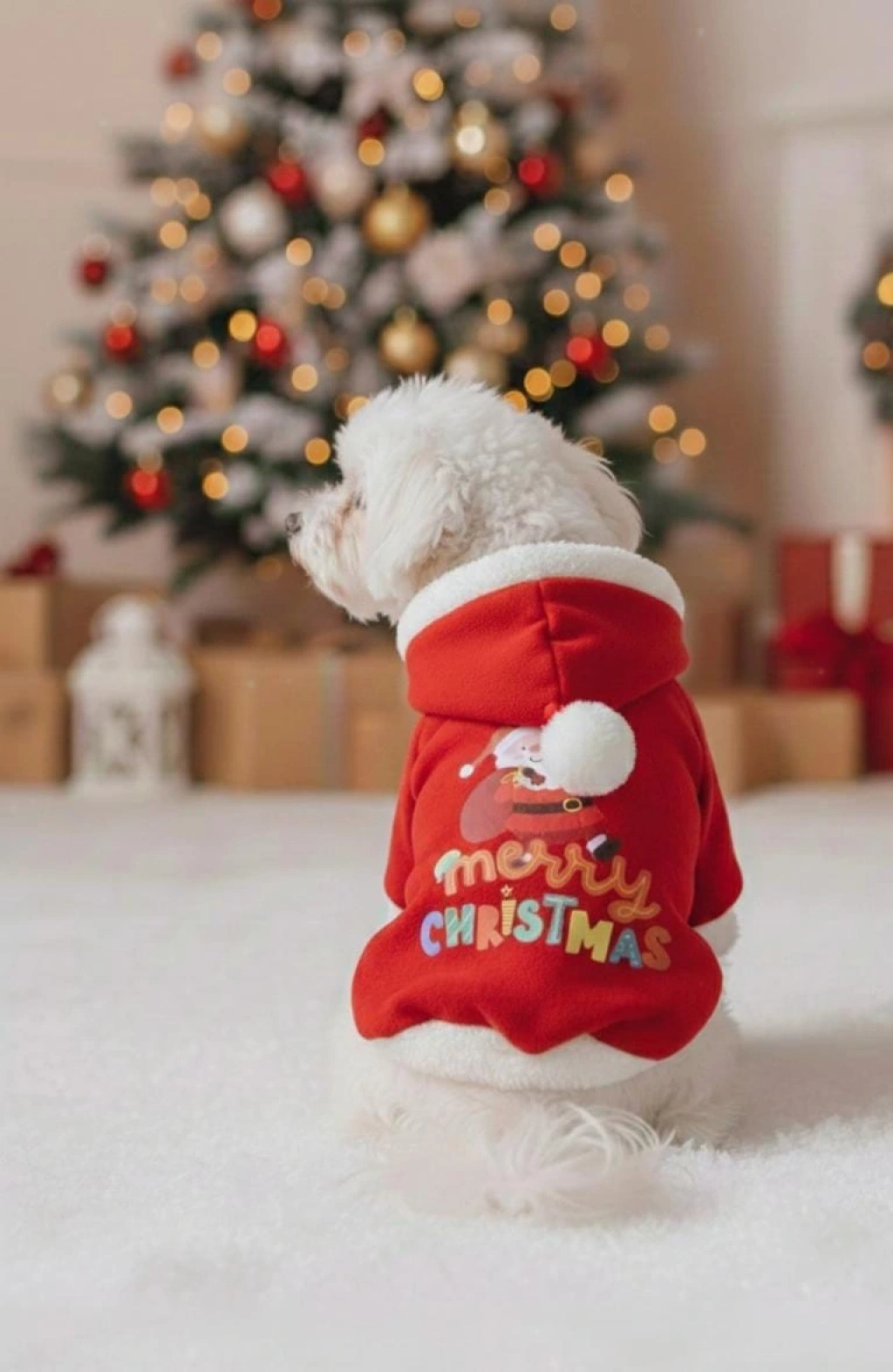 Yılbaşı ruhunu patili dostunuza taşıyan Merry Christmas Baskılı Kapüşonlu Köpek Sweatshirtü, soğuk kış günlerinde hem sıcak tutan hem de şirin bir görünüm sunan özel bir tasarımdır. Yumuşacık peluş iç astarı sayesinde maksimum konfor sağlar; dostunuzun üşümesini engellerken hareket özgürlüğünü kısıtlamaz.