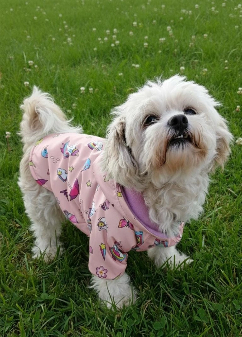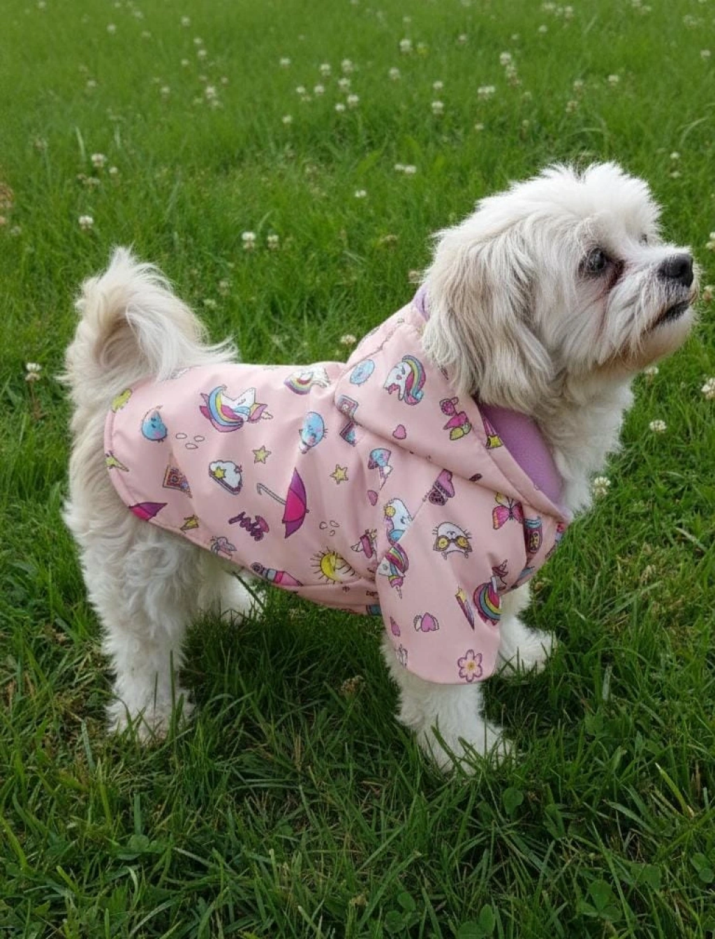 Köpeğinizin kış günlerinde hem şık hem de sıcak kalmasını sağlayan Unicorn Desenli Polar Astarlı Kapüşonlu Köpek Montu, renkli tasarımı ve yumuşacık dokusuyla öne çıkar.