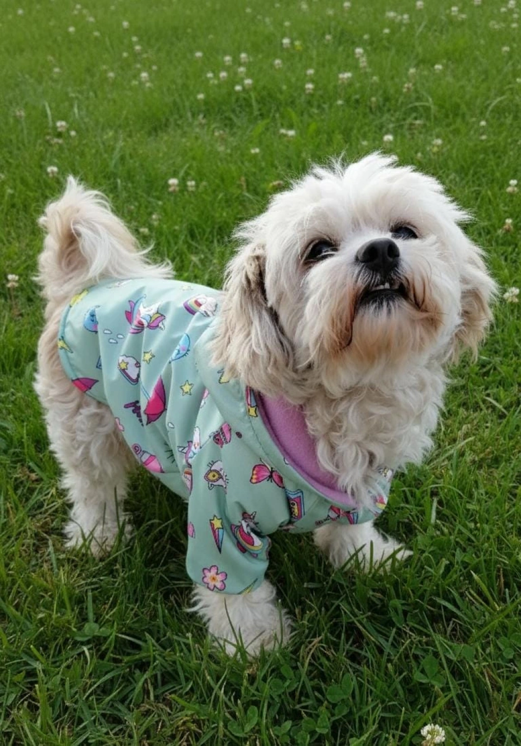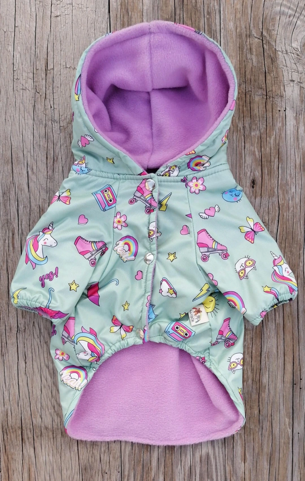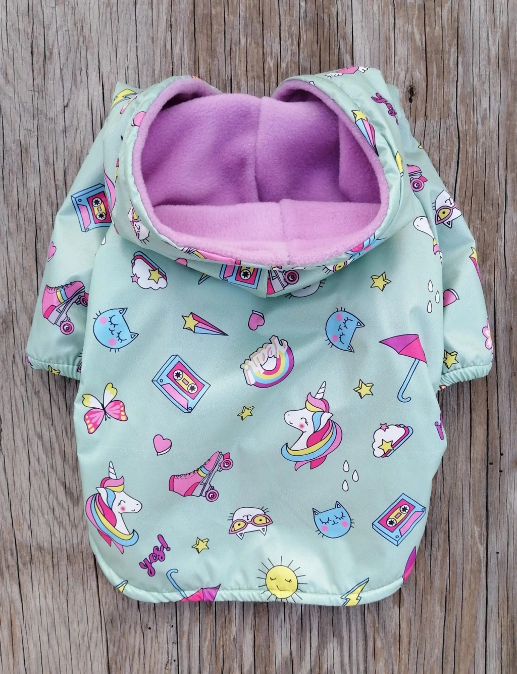 Köpeğinizin kış günlerinde hem şık hem de sıcak kalmasını sağlayan Unicorn Desenli Polar Astarlı Kapüşonlu Köpek Montu, renkli tasarımı ve yumuşacık dokusuyla öne çıkar.